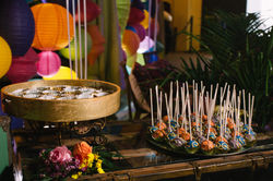 This Thailand inspired wedding design was meant to celebrate the bold bright colors and ancient touches of Thailand. Layering textures, metals, colors and floral we made a tropical paradise fit for a King and Queen. Voted 1st Runner Up.